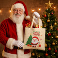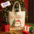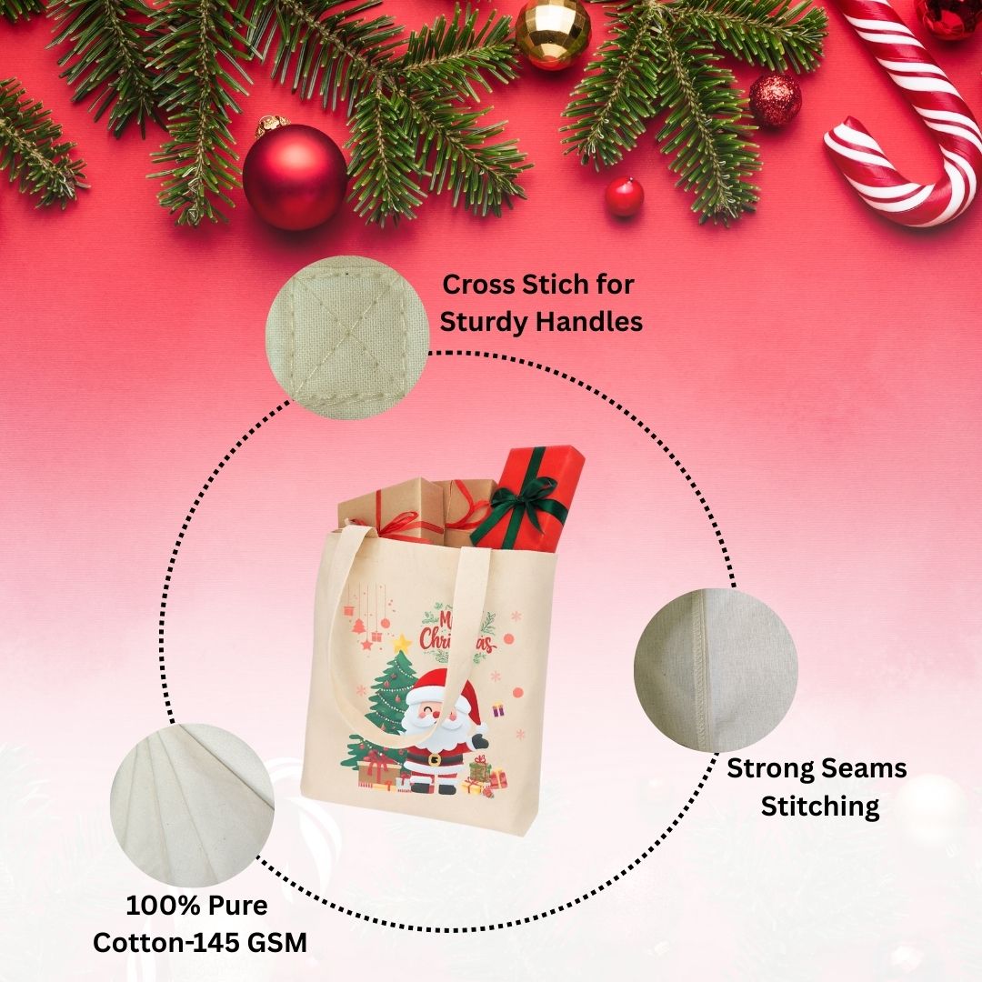 Christmas Printed 100% Cotton Canvas Tote Bags for gift, Present, Souvenir, eco-friendly Reusable Tote Bags -Size 30x30cm+30cm long Handle (Pack of 2)