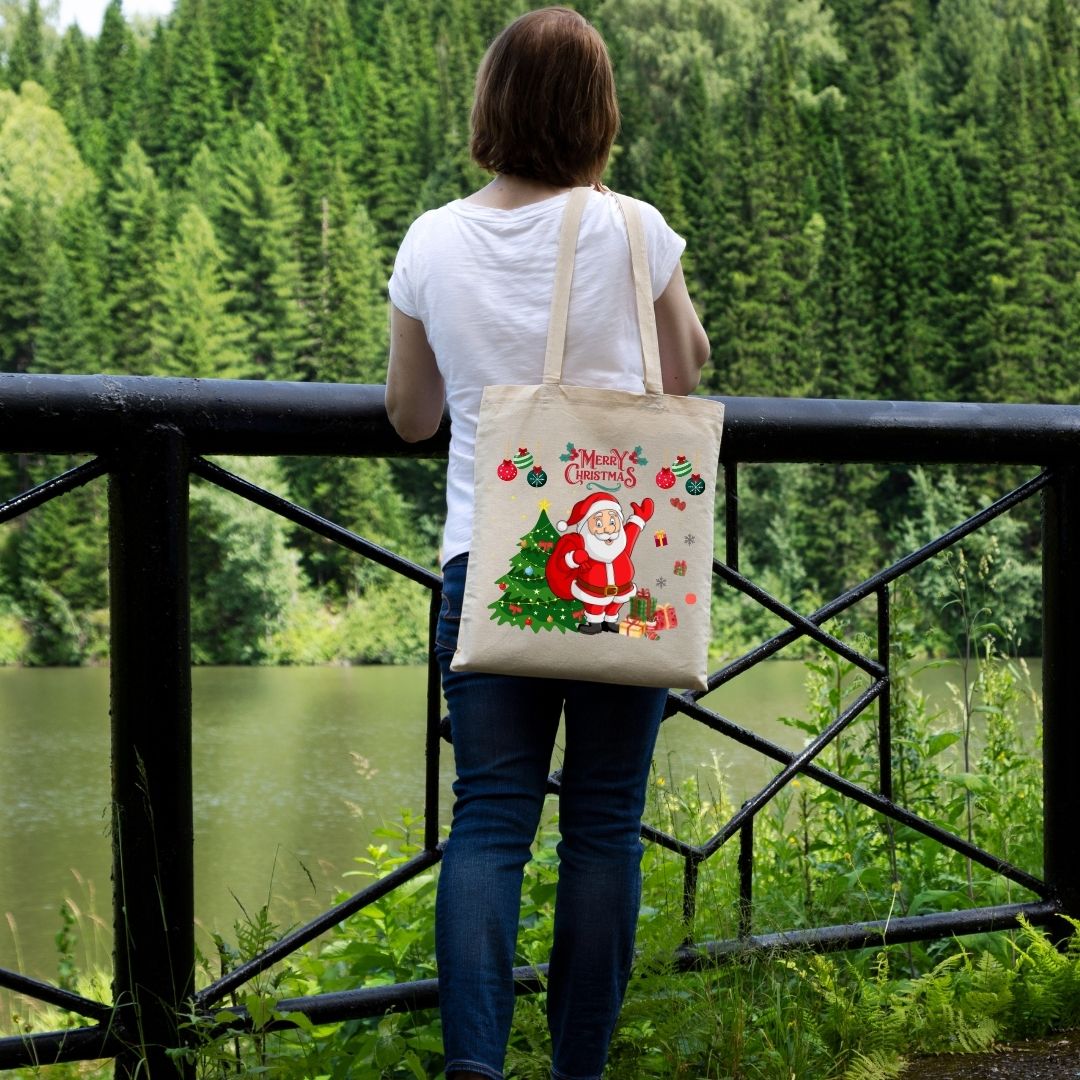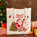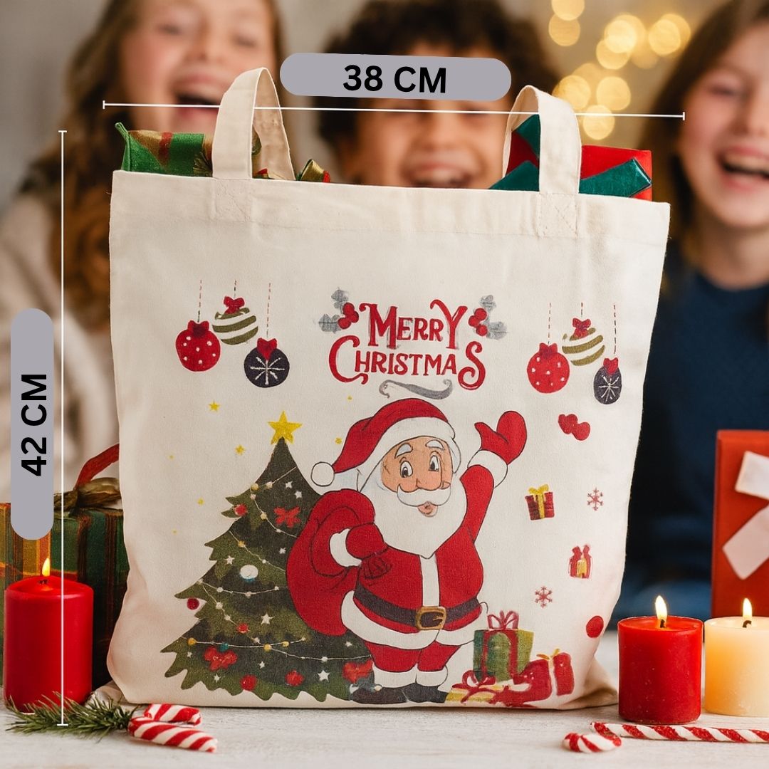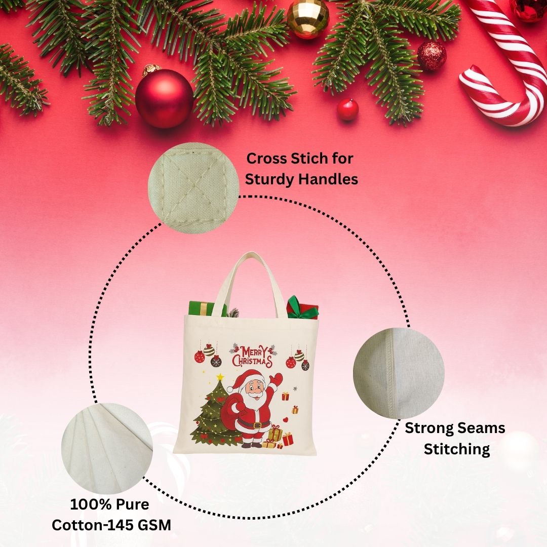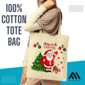 Christmas Printed 100% Cotton Canvas Tote Bags for gift, Present, Souvenir, eco-friendly Reusable Tote Bags -Size 38x42cm+65cm long Handle (Pack of 1)