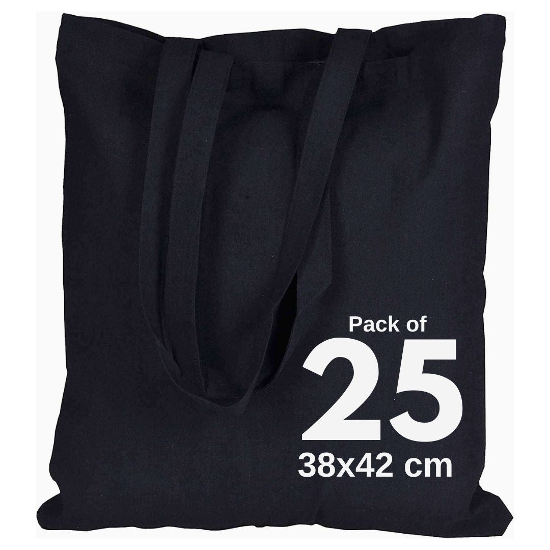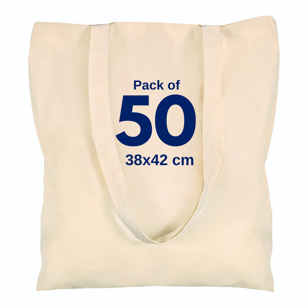 Cotton Canvas Plain Tote Bags to Decorate in Bulk Pack of 10/25/50, 145gsm 100% Natural Cotton Premium Fabric Blank Reusable Large Canvas bag -38 X 42 cm+65cm long Handles