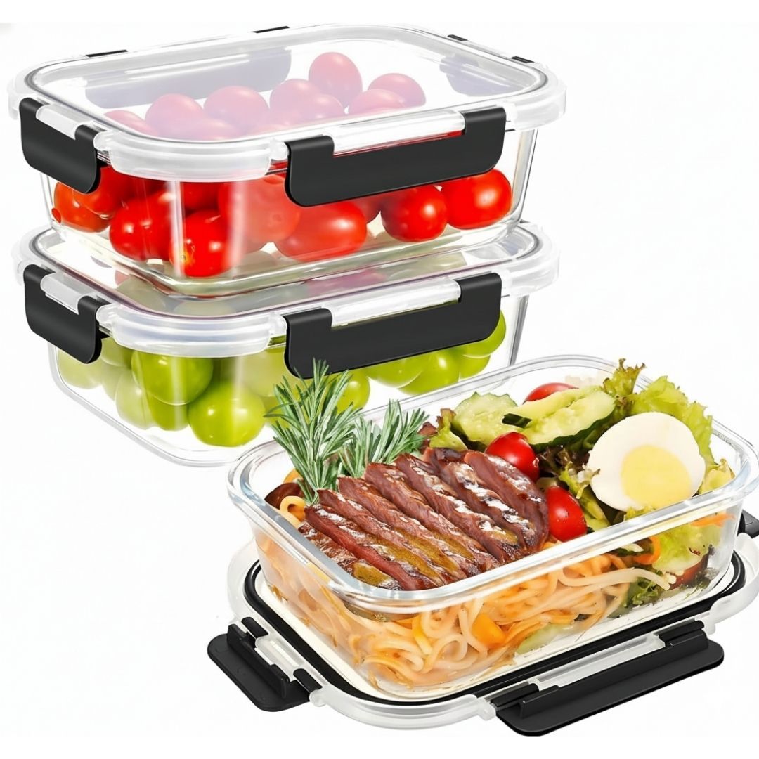 Each container holds 1040 ml, making it ideal for meal-prep portions, family meals, bulk storage of rice, grains or pulses, or storing pre-cooked food for later. The transparent glass body lets you easily see contents without opening the lid — perfect for quick kitchen checks and organised storage.