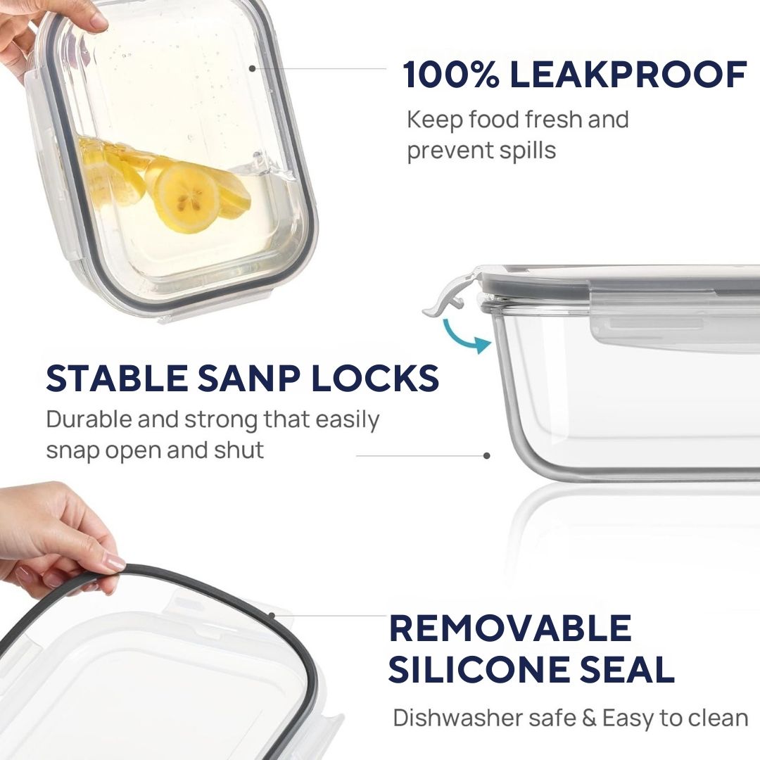 - Versatile & Reusable Glass food storage containers with lids for Every Day-- Use as a glass lunch box with lid, dinner prep, or snack storage. Our meal prep containers reusable are perfect meal prep containers glass for healthy eating on-the-go or at work. Simply it's a perfect food container in every aspect to fulfill your food storage needs.