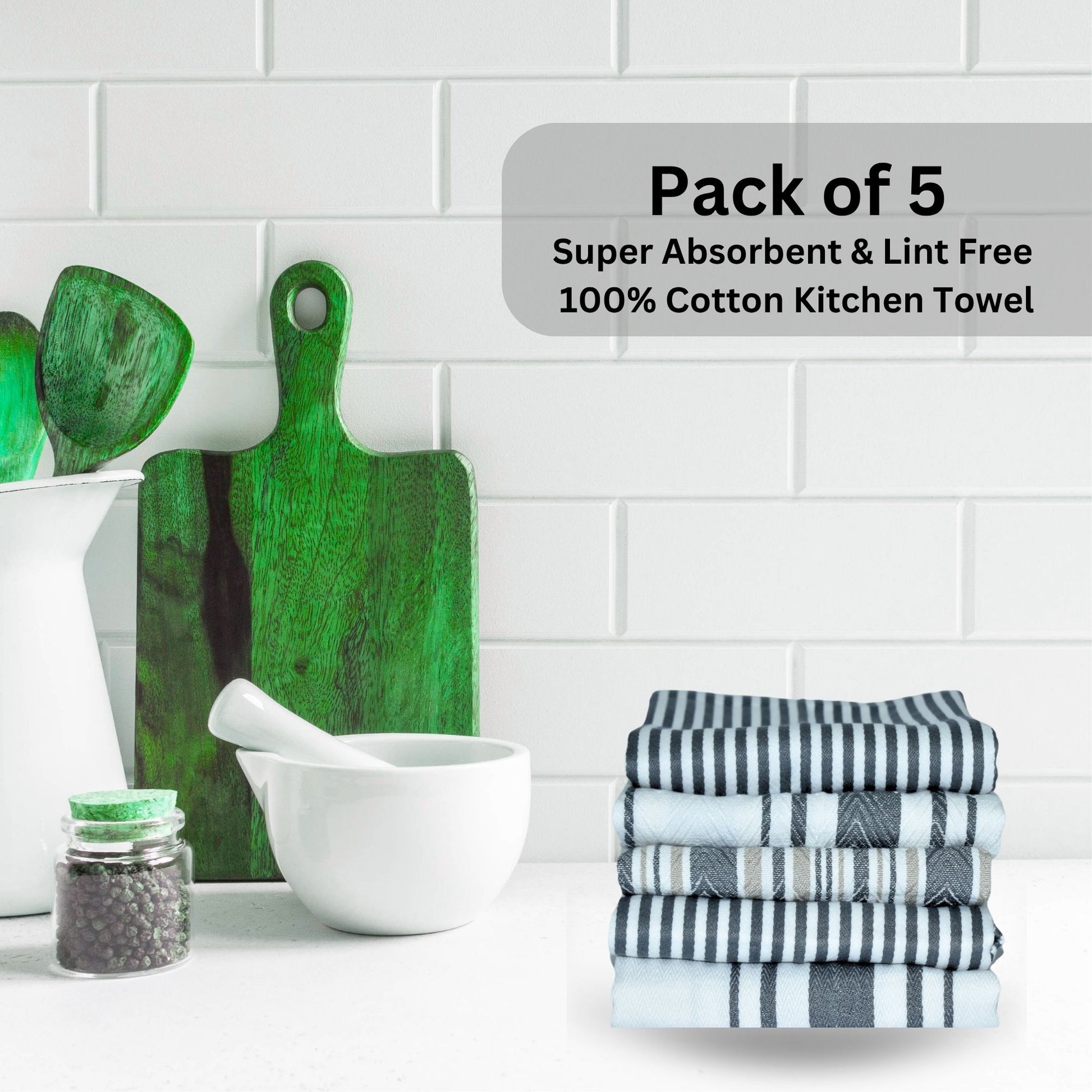 Pack of 5-Grey Cotton Tea Towels for Kitchen Crafted With 100% Cotton, Extra Large Kitchen Tea Towels Lint Free, Soft and Absorbent Dish Towel For Drying Dishes (50x70cm)-300GSM