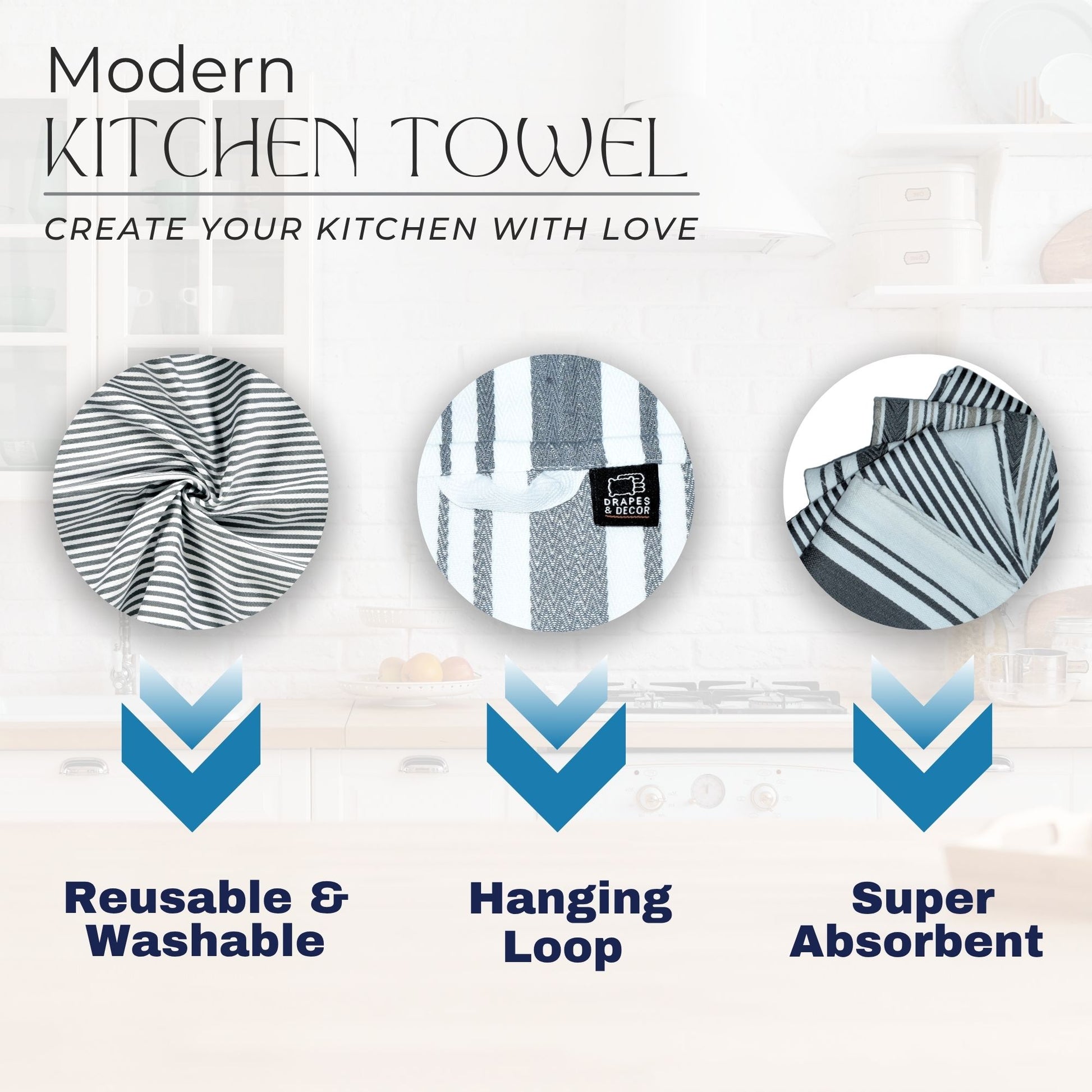 - Perfect for All Kitchen Tasks: White & Grey Tea Towels are Ideal to be used as dish towels for kitchen drying, dish cloths, and kitchen washcloths for dishes, these versatile t towels handle everything from drying dishes to wiping surfaces.